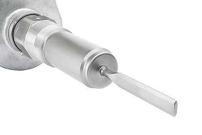 La palette vibrante MBA700 est dotée d'un capteur très sensible à l'intérieur de son boîtier robuste. Elle est donc particulièrement adaptée aux produits en vrac légers et pulvérulents. Cette méthode de mesure à passage unique ne permet pas de pincer les produits en vrac (comme c'est le cas avec les fourches vibrantes). La forme en épée de la palette vibrante permet d'éviter efficacement les dépôts.